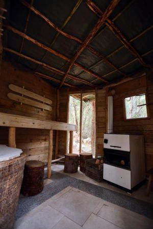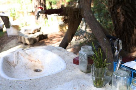 Dotaknula sam hladan kameni stolac ali on je odisao nekom čudnom toplinom, toplinom duše meni do tada još uvijek nepoznatog čarobnjaka. Put nas je dalje mamio u nepoznato pokraj borova koji su kao stražari čuvali skriveno blago i tada je pogled pao na drvenu kolibu, baš poput one u bajkama, a ispred nje nas je sa širokim osmjehom dobrodošlice i otvorenim vratima za kreativnost dočekao Ivan Tokić konceptualni umjetnik i kreator cijele ideje ovog mjesta.