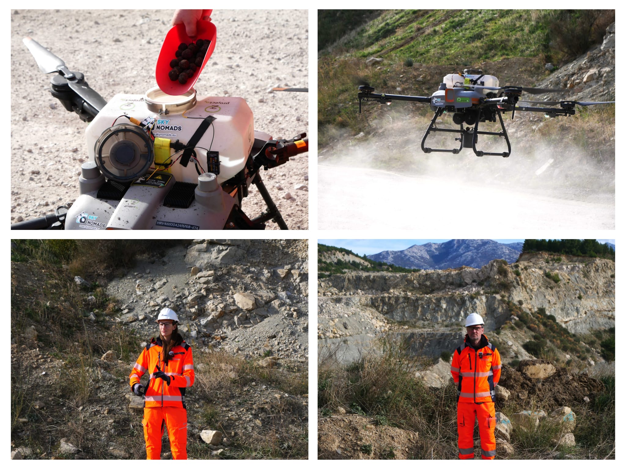 Project O2 se već niz godina bavi pošumljavanjem većih i nedostupnih područja iz zraka, pri čemu letjelice automatizirano izbacuju samoklijajuće paketiće supstrata i sjemena autohtonih vrsta. Specijalno konstruirani dron ispustio je tako 3.000 posebnih sjemenskih bombica tzv. SeedBombs na površinu veću od 5.000 m2 rudnika. Korištene bombice nisu obične kuglice – one su mali ekosustavi. Svaka sadrži autohtone sjemenke brnistre, koje su na lokaciji prikupili Cemexovi volonteri u prvoj fazi projekta tijekom ljeta, zatim sjeme crnog bora, smilja, bušina, komorača i crnog jasena te hranjive tvari, hidrogel za zadržavanje vlage i mikorizu koja potiče rast. Takvim pristupom cilj je osigurati da svaka bombica ima najveću moguću šansu za uspjeh, čak i na najtežim terenima.