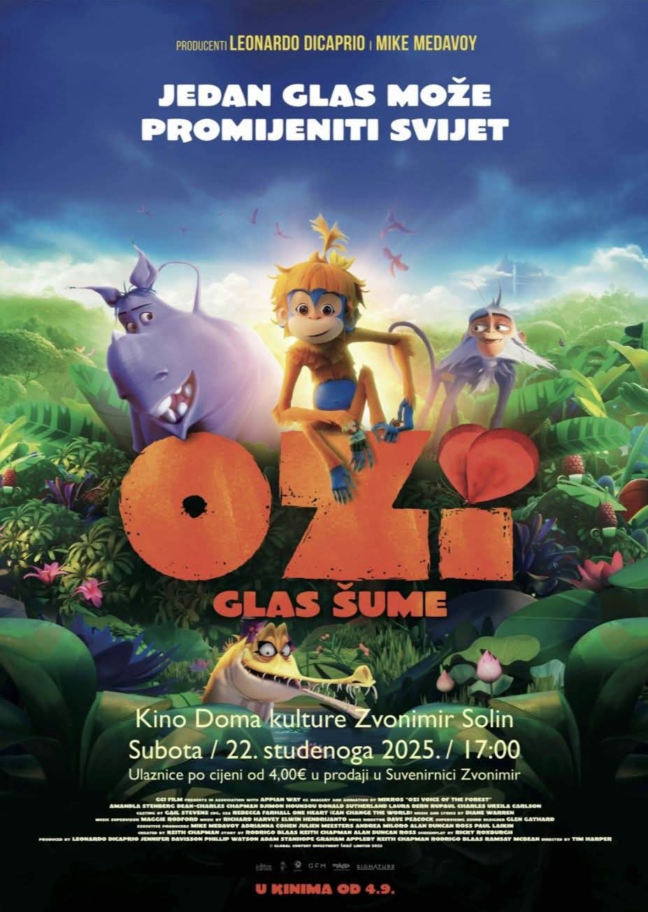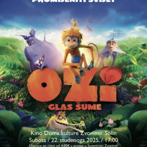 U subotu, 22. studenog 2025., Dom kulture poziva sve mlade gledatelje na animiranu pustolovinu “OZI: Glas šume”. Sinkronizirani film traje 87 minuta, a projekcija počinje u 17:00 sati.