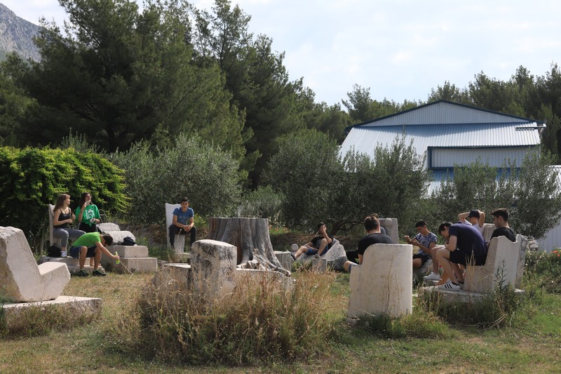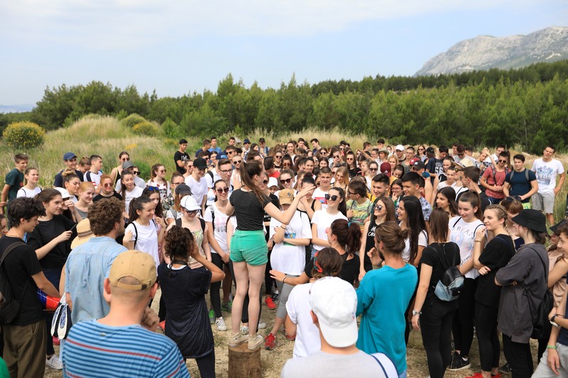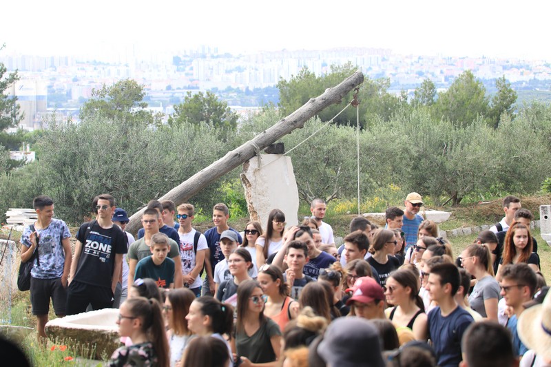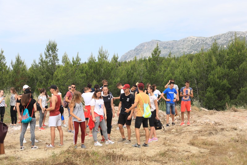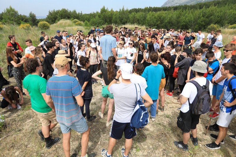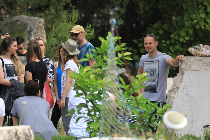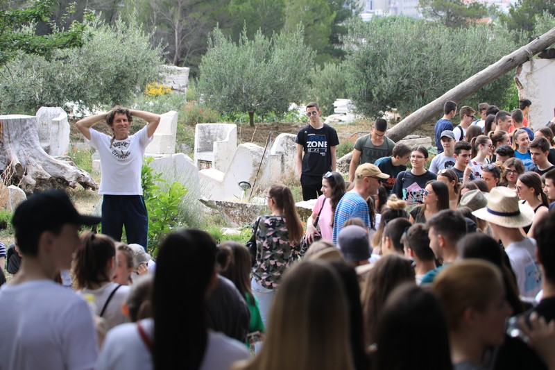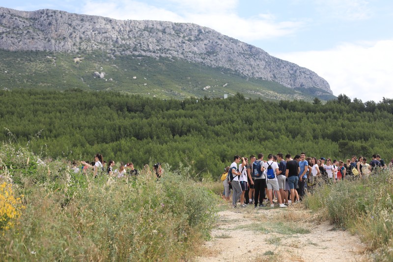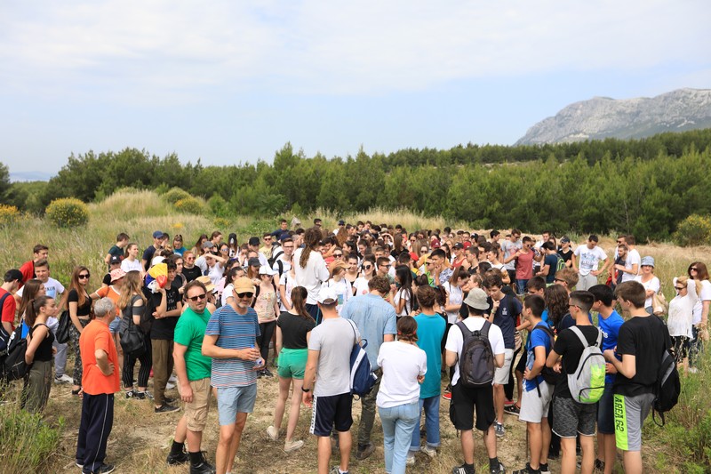 Učenici su pažljivo slušali domaćina Ivana Tokića i sudjelovali u samom radu na prostoru solinskog rezervata prirode i kulture. Zajedno su očistili veliki plato iznad rezervata, kojeg je Ivan zamislio kao prostor namijenjen koncertima na otvorenom.