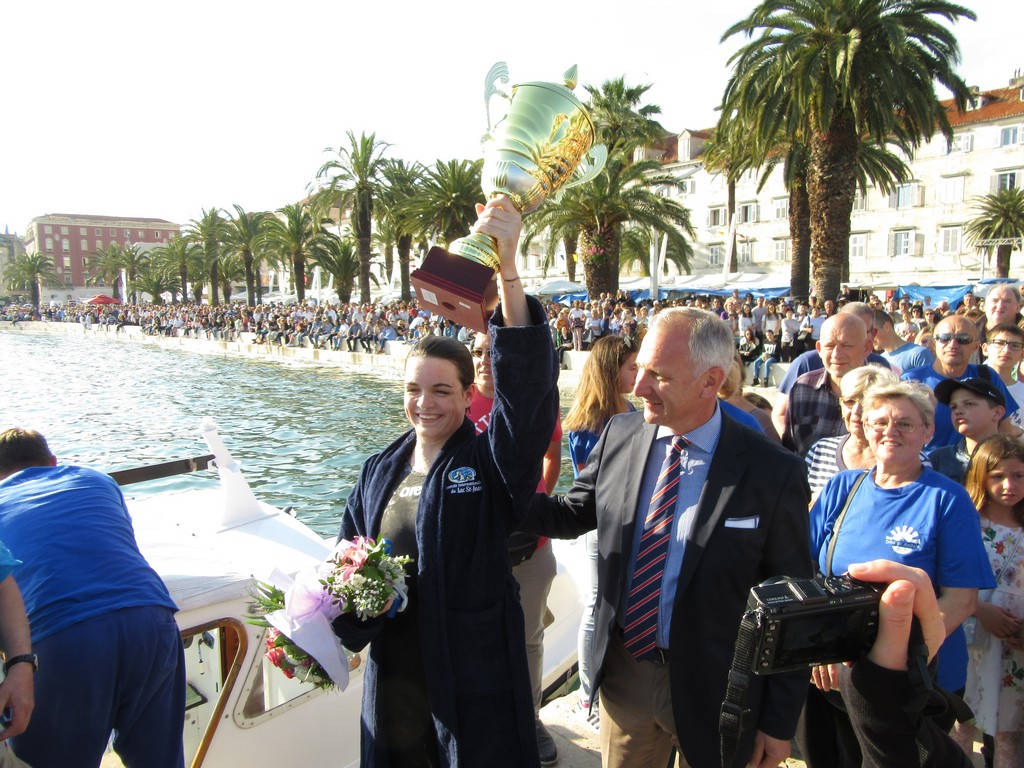 Ovu subotu dočekali smo na splitskoj Rivi našu Dinu Levačić koja je u nepuna 4 sata preplivala od Trogira do Splita, u svrhu prikupljanja sredstava za kupnju ortopedskih pomagala za djecu s poteškoćama u razvoju iz udruge ˝Anđeli˝