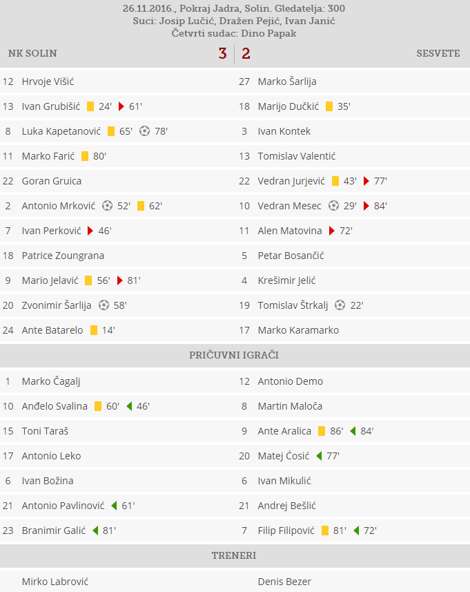 Po blatnjavom i vodom natopljenom terenu naša momčad je pobjedila NK Sesvete rezultatom 3:2 koji dovodi Solin na prvu poziciju 2. HNL.