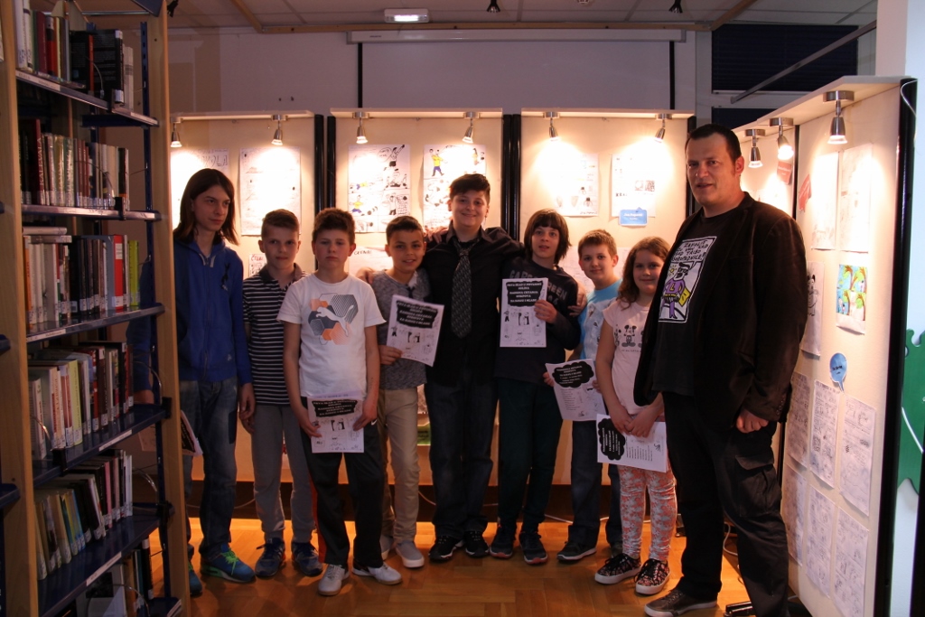 Na Dječjem odjelu Središnje knjižnice 14. travnja u 19:30h otvorena je Izložba dječjih stripova nastalih na radionicama koje je od 5. ožujka do 9. travnja u Knjižnici vodio akademski slikar Vinko Barić.
