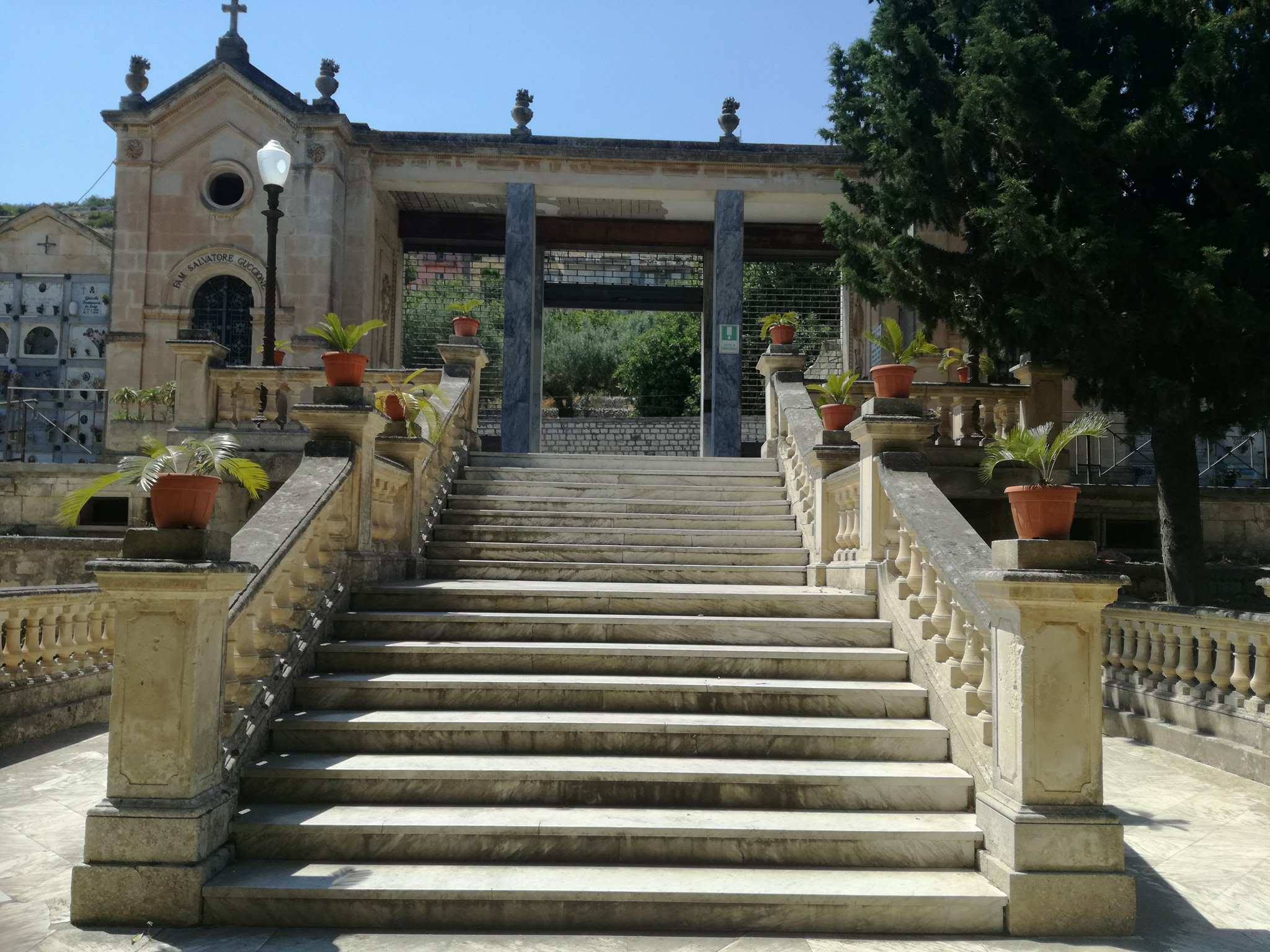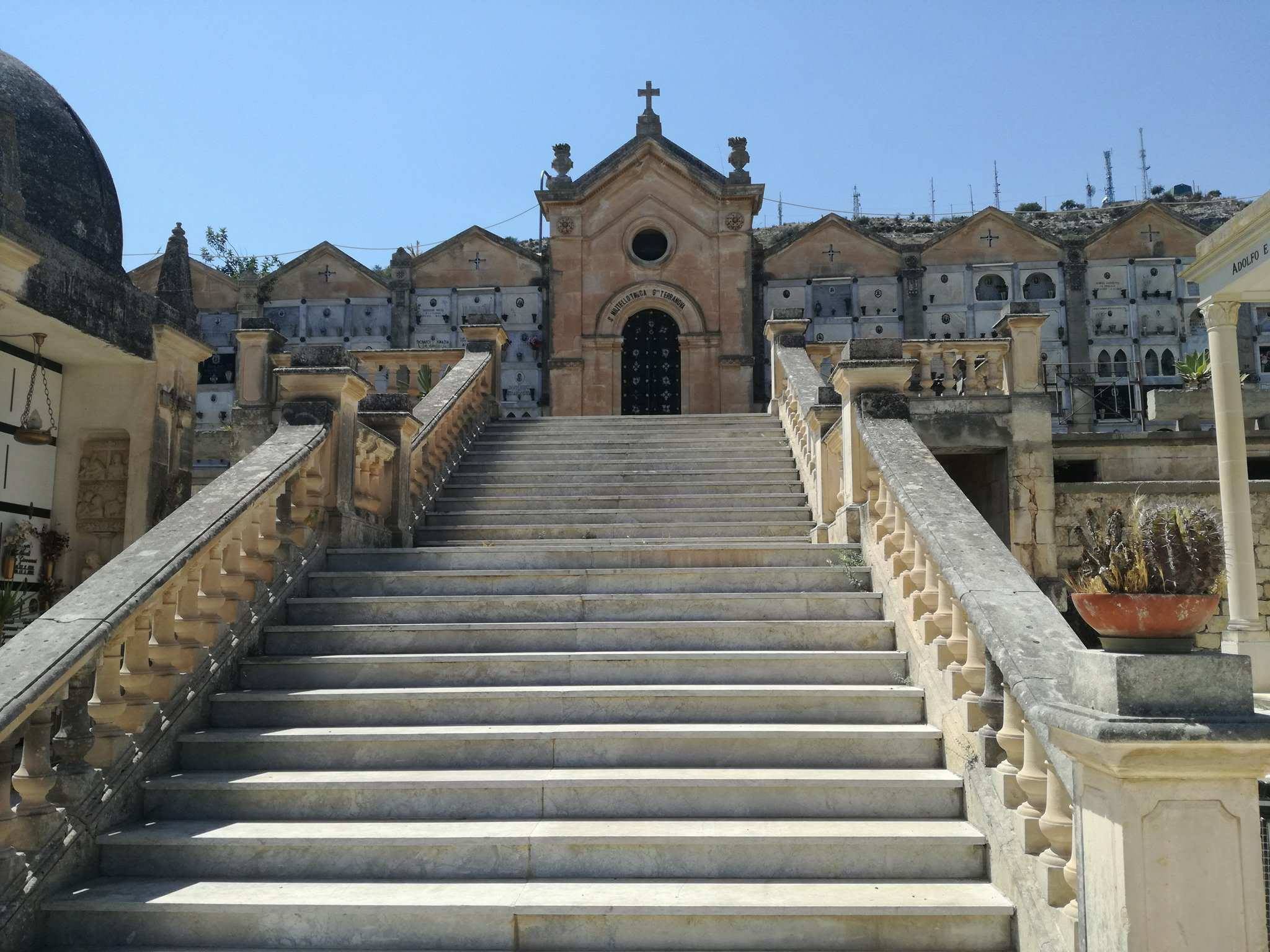 Opet zastajemo pred crkvom u središtu Sciclie, pa obzirom da su talijanska i to posebno Sicilijanska groblja poznata kao jedinstvena, drugačija, to ne propuštam priliku posjetiti u podnožju ovog gradića prekrasno groblje.