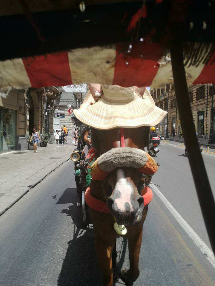 Kočijaš je totalno cool on vozi tu kočiju luđe od ijednog auta u Palermu, a ako ste zaboravili na Siciliji se auti voze na poseban način, dvi trake se pretvaraju u četiri trake, zebra nije zebra, pješak nema nikakva prava ni kad je zeleno za pješake, ako uopće uspijete primijetiti semafor, pa zato ovdje pješaci i kad imaju pravo, bolje da ga nemaju jer će završiti ako ne pod kolima auta onda zasigurno pod kotačima kočije.