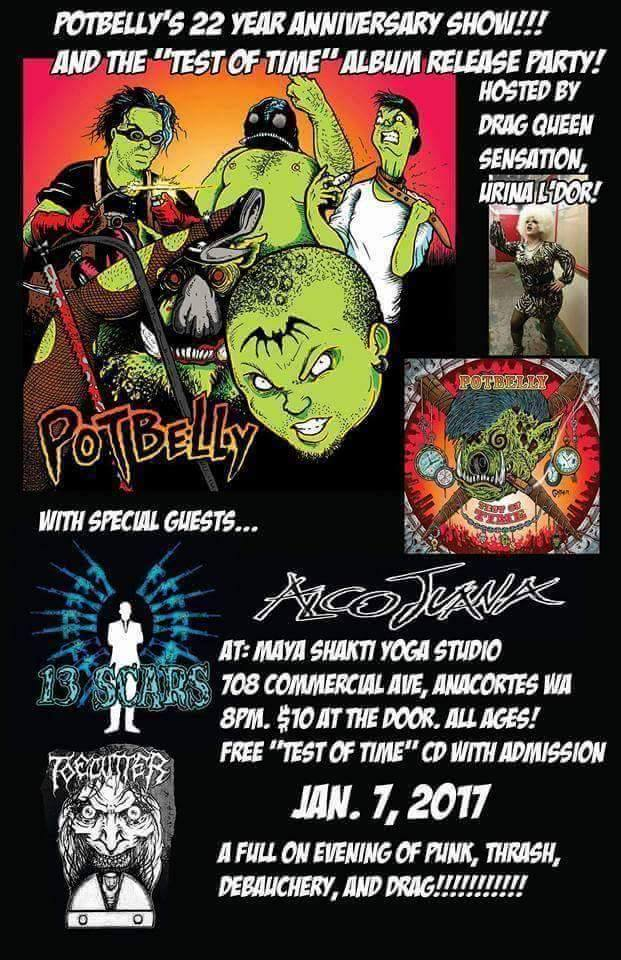 POTBELLY started in 1995. I was 17 at the time. In the early 90’s I was in a crossover band called XENN. Ken Ball, and Curtis Jay were in a crossover band called GRUMBLE THORP, when both bands split up, the three of us started POTBELLY. Curtis is no longer with us. He passed away. Over the years Ken and I went through lots of members. So Thier are a lot of records with different line ups. But it’s always been the same idea. Today we have a great line up. Boner on drums. And Christen Ogden on guitar. Touring is the easiest it’s ever been. As for splits, we’ve put out a lot. DOA, MDC, THE ACCUSED, BUTT TRUMPET, FANG, just to name a few. And we’ve been on compilation records with such bands as DI, THE MISFITS, SUBHUMANS, the list goes on.