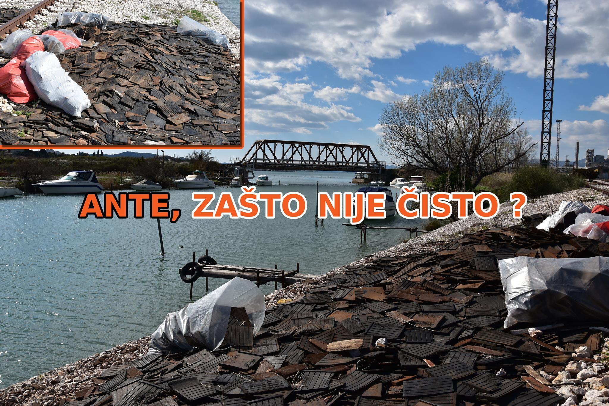 Krajem 7 mjeseca (srpanj, 2016) upozorili smo komunalnog redara Antu Rosu da se na samom ušću rijeke Jadro, uz samu obalu, nalazi ilegalno odlagalište (gumeni otpad sa slike).