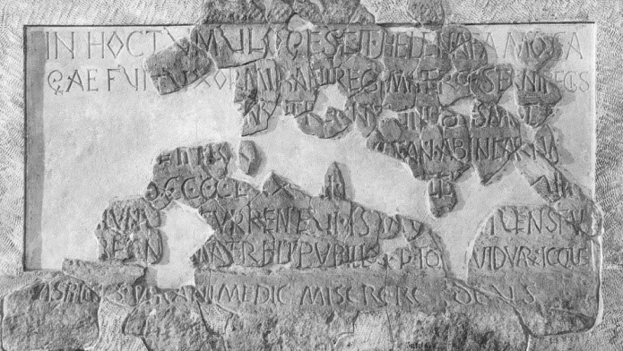 Rekonstruirani ostatci nadgrobnog natpisa kraljice Jelene iz 976.