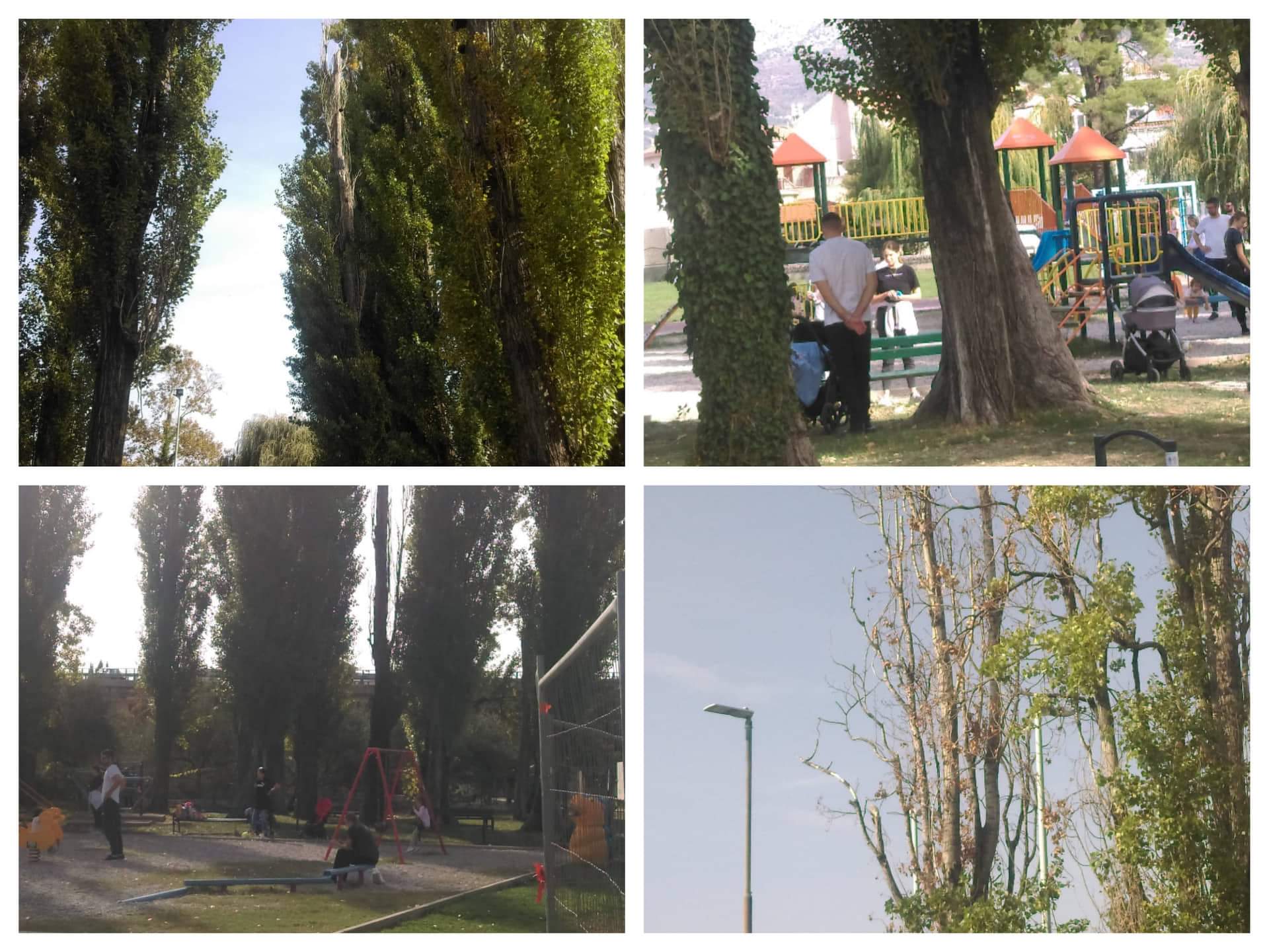 Nedilja, kud ću neg prošetat doli da rastegnen noge i uvirin se da na tom parku postoji još veća opasnost od suvih jablanova. Ima ih poprilično i svaki se kiti suvin granama. Popriličan broj dičice se igra ispod njih ( slike ko dokaz ) a roditelji su tu sa njima. Dan idealan za igranje.