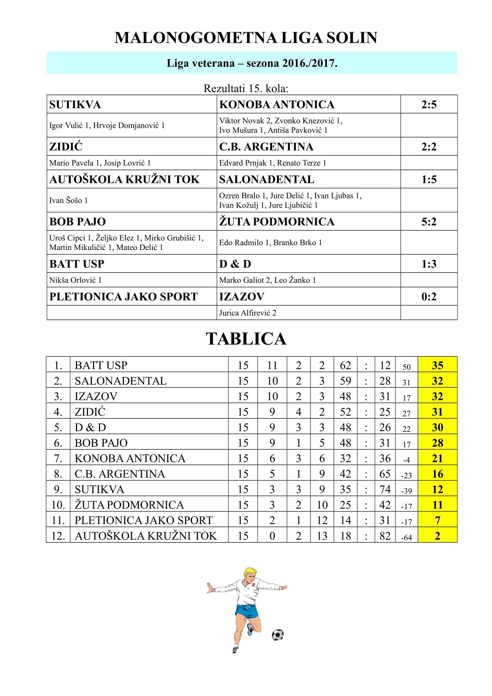 MALONOGOMETNA LIGA SOLIN: Rezultati 15. kola
