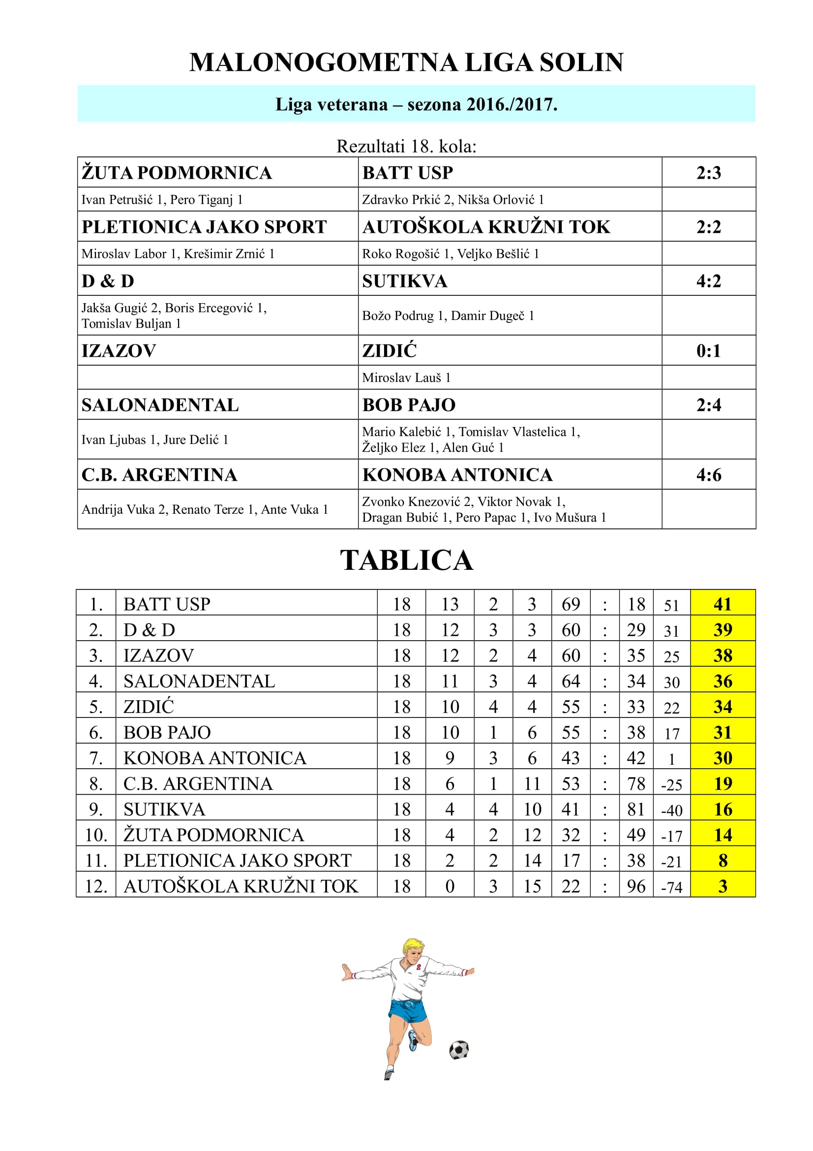 MALONOGOMETNA LIGA SOLIN: Rezultati 18. kola