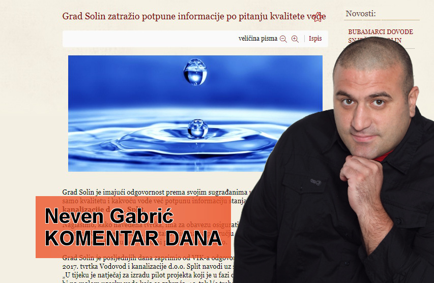 Grad Solin je imajući odgovornost prema svojim sugrađanima uputio upite i zatražio ne samo kvalitetu i kakvoću vode već potpunu informaciju stanja od tvrtke Vodovod i kanalizacije d.o.o. Split.