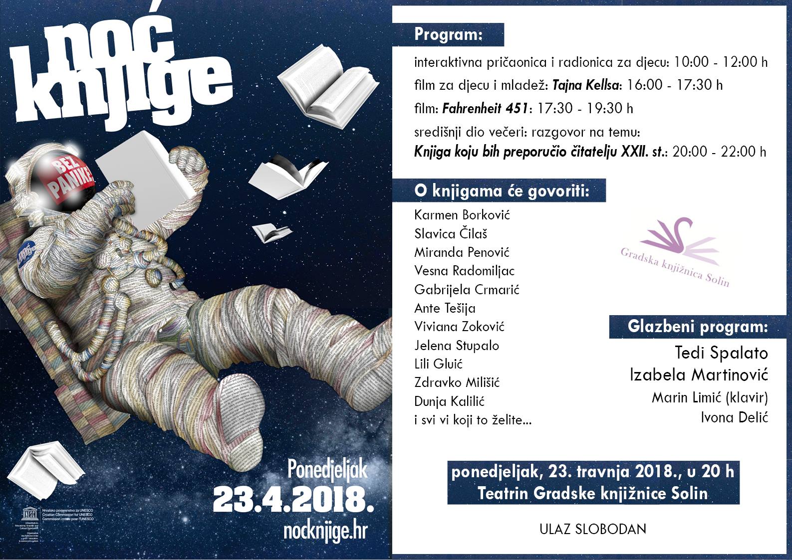 Program Noći knjige u Gradskoj knjižnici Solin 23. travnja 2018.