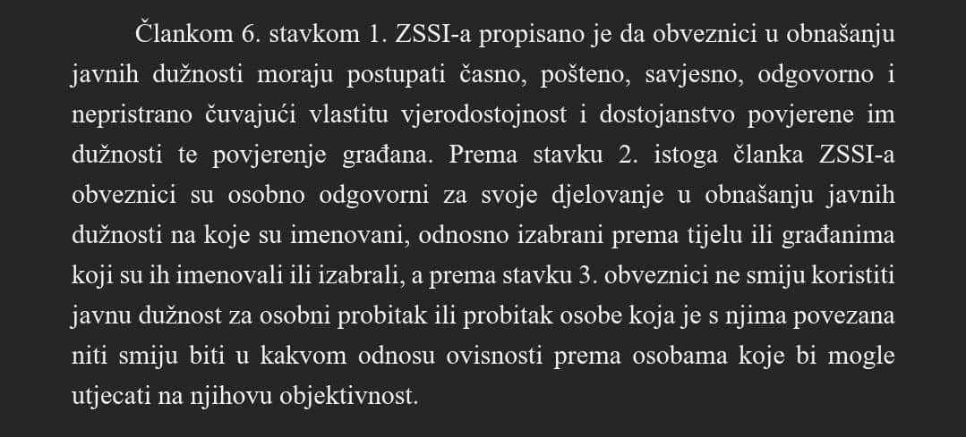 Očito Gradonačelnika Ninčevića ne zanima ono što navodi članak 6. Zakona o sprečavanju sukoba interesa. Časno, pošteno, nepristrano, moralno!!!