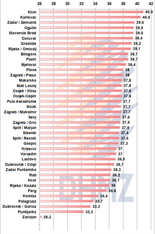 Karlovac, 40.5°C – dosadašnji rekord 39.8°C od 8. kolovoza 2013. (mjerenja od 1949)