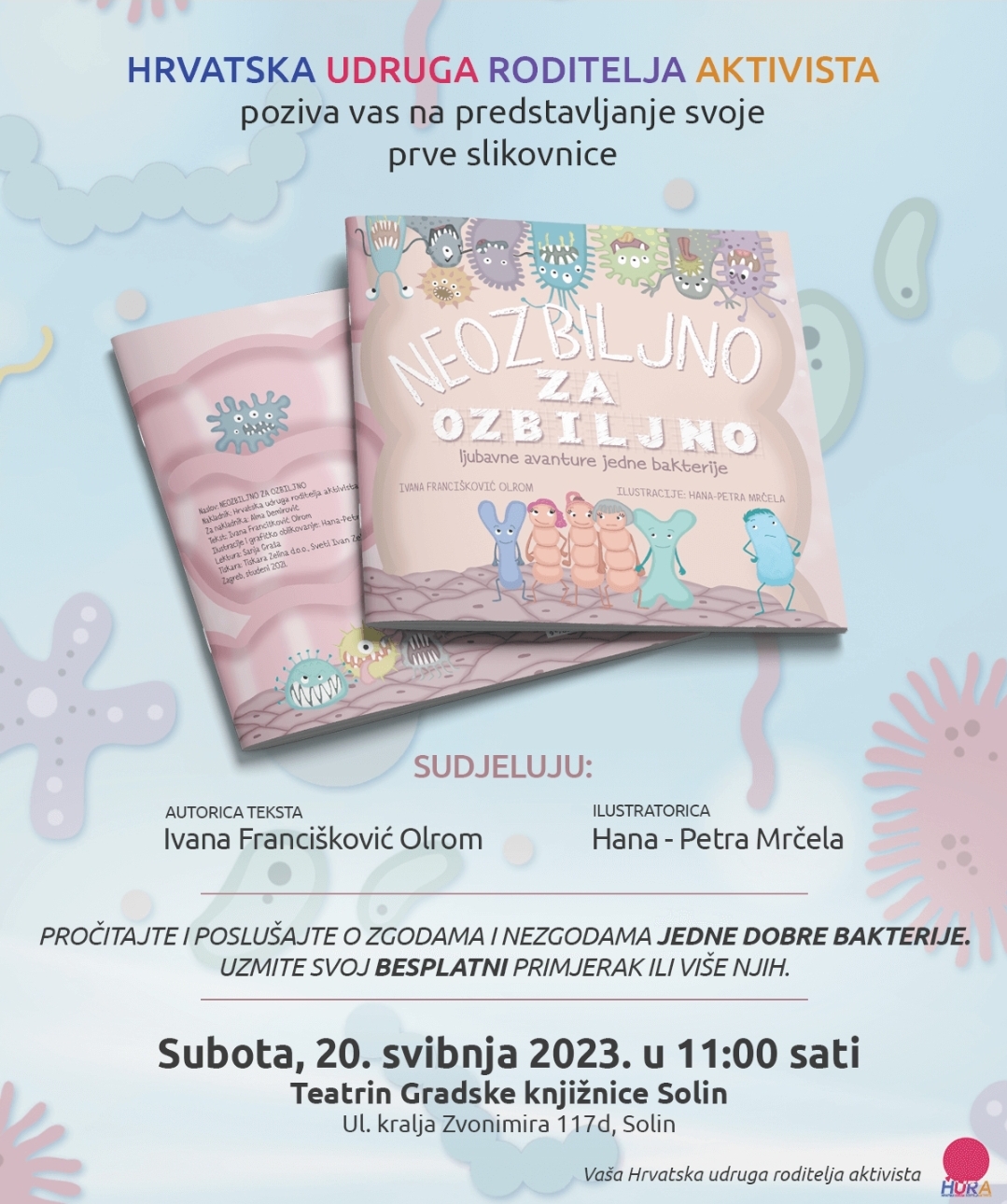 Hrvatska udruga roditelja aktivista poziva na predstavljanje svoje prve slikovnice “Neozbiljno za ozbiljno – ljubavne avanture jedne bakterije”.