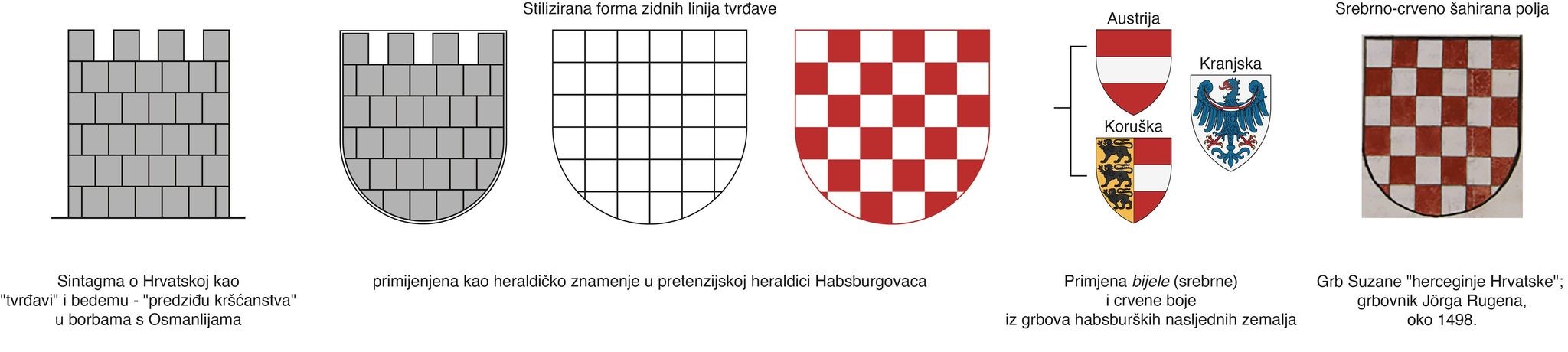 Slijed oblikovanja hrvatskog grba sa šahiranim poljima u habsburškoj pretenzijskoj heraldici od Krbavske bitke do prvih grbovničkih prikaza