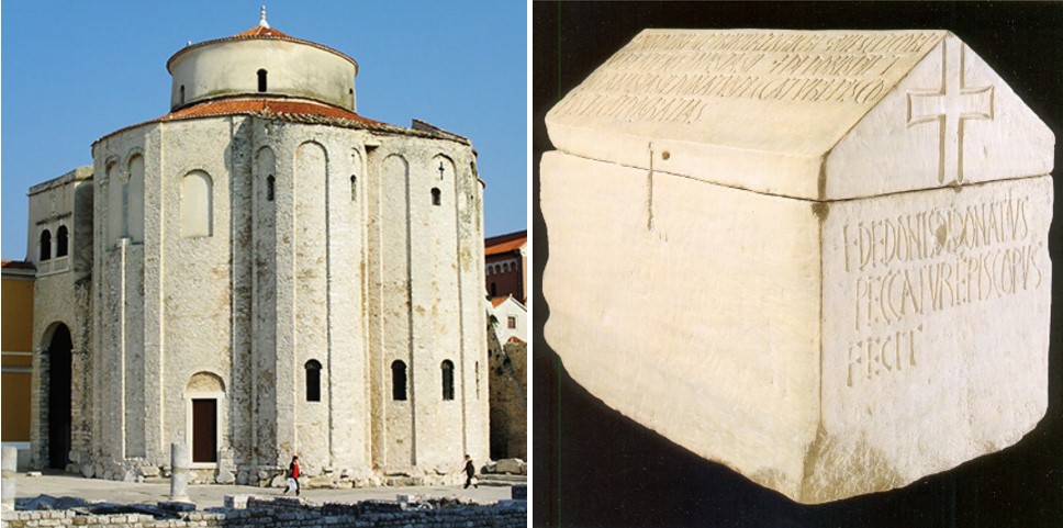 Crkva sv. Donata (izvorno posvećena sv. Trojstvu) u Zadru s početka IX. st. (izgradnja se pripisuje zadarskom biskupu Donatu); sarkofag s relikvijama sv. Anastazije ili Stošije – srijemske mučenice i nebeske zaštitnice Zadra