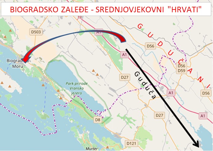Područje toka rječice Guduče – teritorij Gudučana (kojima je oko 818. godine vladao Borna, budući knez „Dalmacije i Liburnije“): u odnosu na Biograd i biogradsko zaleđe – srednjovjekovni „Hrvati“ (današnji Ravni kotari)