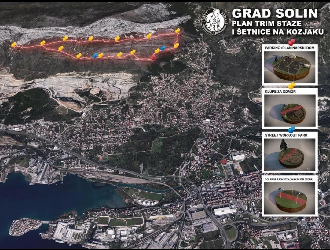 Veliki križ i solinska sky šetnica: Planiramo izgradnju žičare koja će povezati povijesnu Salonu s vrhom Kozjaka. Na vrhu će se nalaziti veliki križ, simbol našeg marijanskog svetišta, te restoran, kafić i veliki parking za posjetitelje. Uz to, planiramo izgradnju posebne solinske sky šetnice, koja će posjetiteljima pružiti spektakularan pogled na Solin, okolicu i Jadransko more. Ova jedinstvena atrakcija bit će simbol spoja prirodne ljepote i kulturne baštine našeg grada.