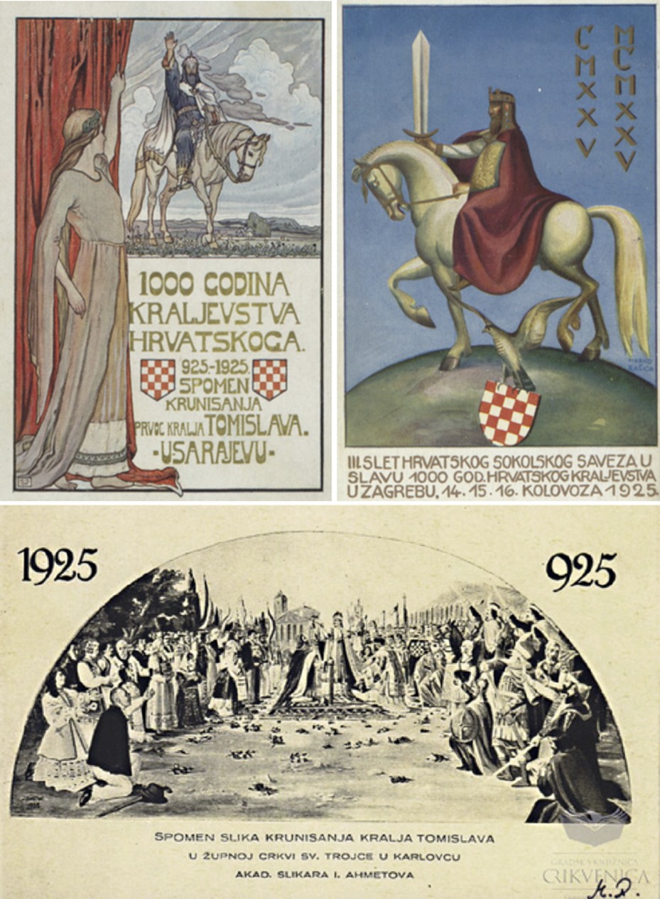 Ilustracije kralja Tomislava prema djelima slikara Gabriela Jurkića, Marka Rašice i Ilije Ahmetova, nastale povodom milenijskog obilježavanja Hrvatskog Kraljevstva 1925. godine