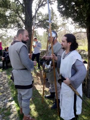Prezentacija mačevalačkog dvoboja – ratničkog segmenta oživljene povijesti starohrvatskog doba u izvedbi povijesne postrojbe „Praetoriani Croatorum“ (dijela projekta „Regnum Croatorum“) tijekom manifestacije u Bijaćima krajem veljače 2019. godine