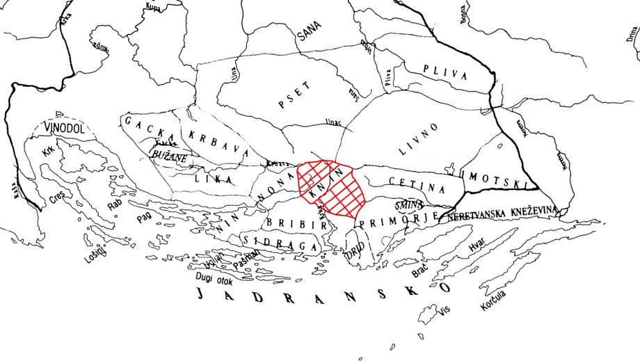 Teritorijalni razmještaj nekih starohrvatskih županija: Sidraške, Ninske, Kninske, Bribirske, Primorske (Kliške), Cetinske, Livanjske i Imotske u odnosu na današnje državne i druge administrativne granice
