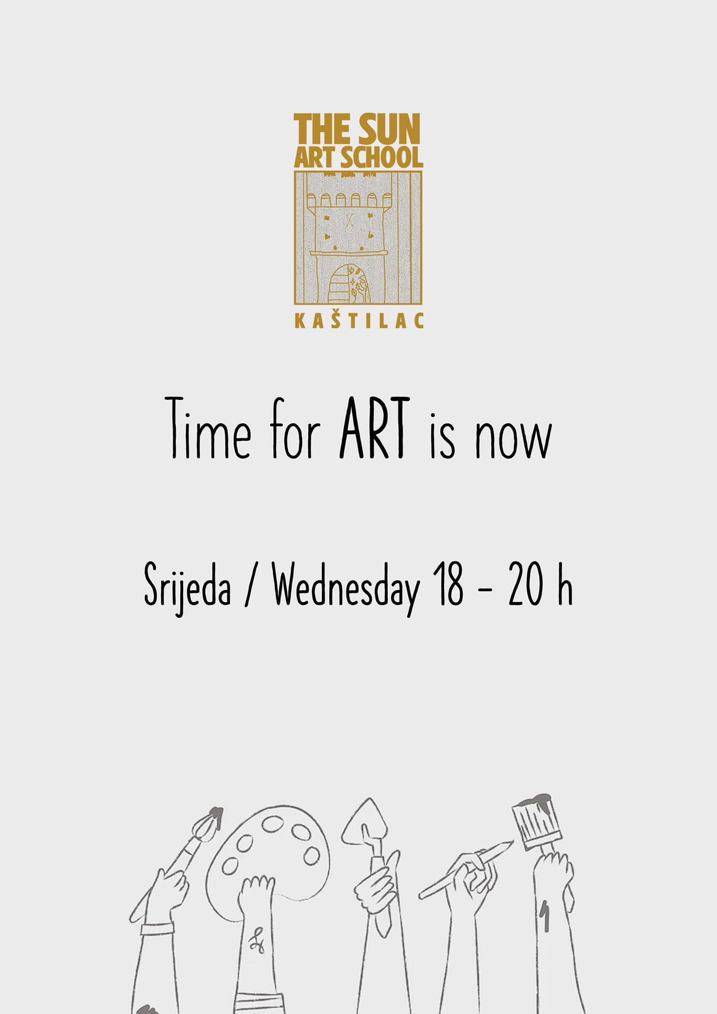 Rezervirajte svoje mjesto na vrijeme slanjem poruke na Facebook stranici THE SUN ART SCHOOL ili na WhatsApp 099 341 5060