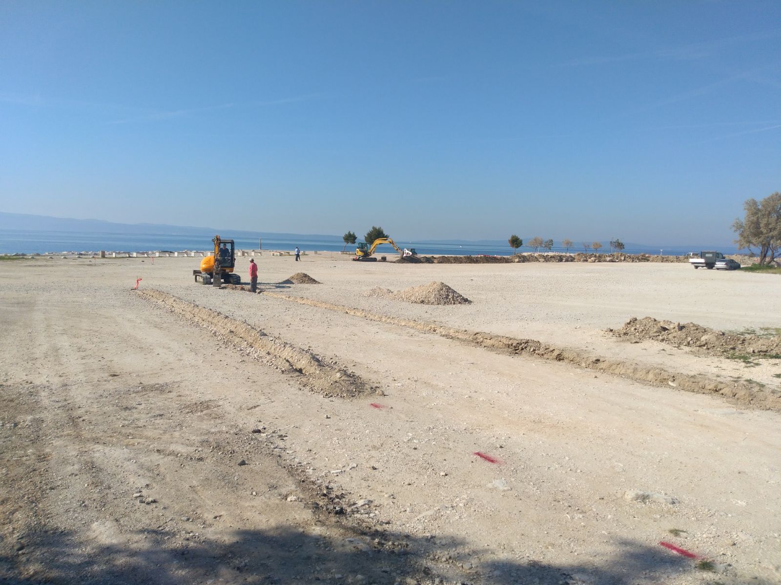 Žnjanski plato uređuje se za privremeno rješenje za 2018. i 2019. godinu. Postavljaju se rubnjaci za pješačke staze kao i priključci za module, a u tijeku je i ravnanje zapadnog dijela predviđenog parkirališta. Radove izvode tvrtke angažirane na održavanju javnih cesta i površina Cestar i Point Split, kao i Vodovod i kanalizacija i HEP-Telekomunikacije, svatko za svoj dio posla.