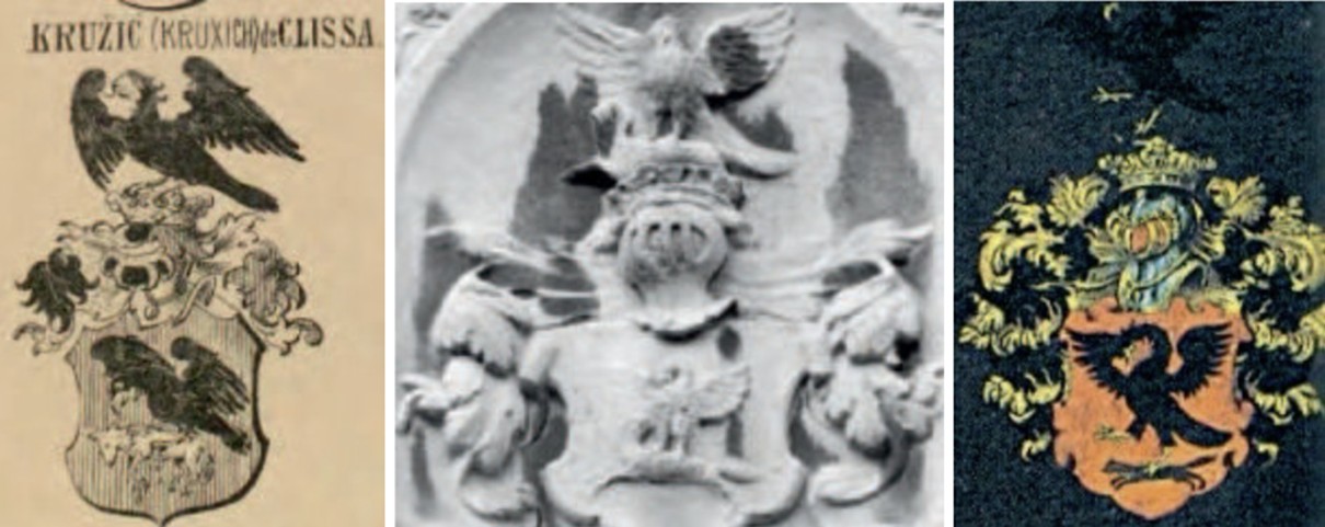 Grb Kružića, kako ga donosi Ivan Bojničić u svojem djelu „Plemstvo Hrvatske i Slavonije“ (1899.) – riječ je o grbu kojeg je 1550. godine kralj Ferdinand I. dodijelio Petrovom nezakonitom sinu Ivanu uz naznaku kako ga je koristio i njegov otac Petar; Istovjetni grb sačuvan na Ivanovom dvorcu Pezinoik (današnja Slovačka); Isti grb na portretu Ivana Kružića koji se danas čuva u dvorcu Trencsény u Slovačkoj (Zoran Peran, „O porijeklu Petra Kružića, ili prilog o grbu Kružića od Kruga i Dražojevića Poljičkih – 1 dio“, 2023.)