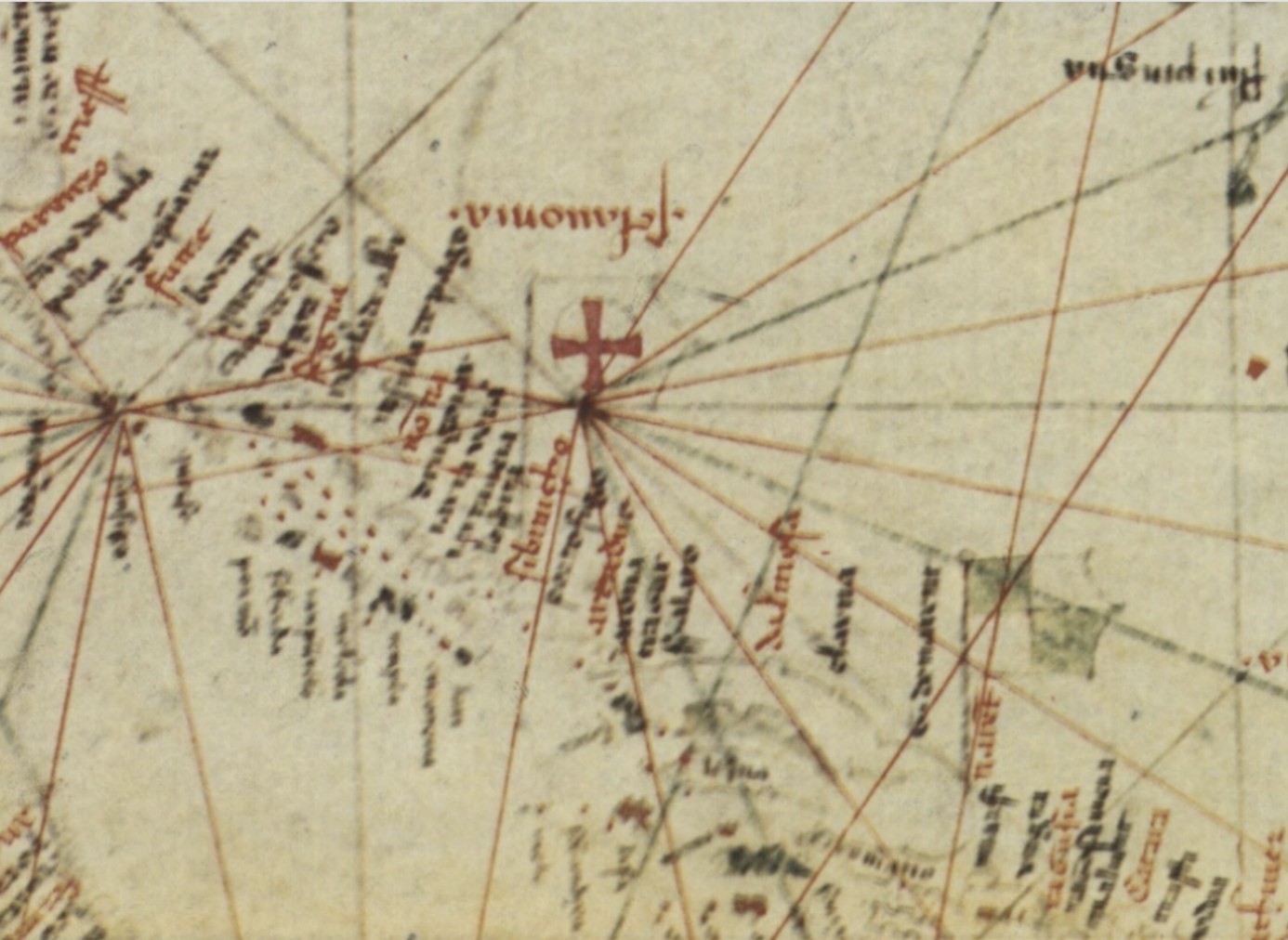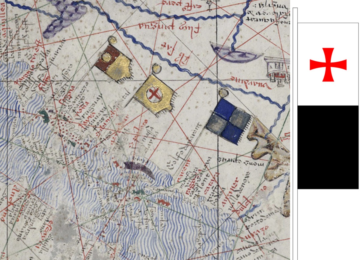 Prikaz hrvatske obale na „Katalonskom atlasu“ iz 1375. sa zastavama na kojima su tri znamenja: „senjsko“, „šibensko“ i „neretvansko“ (tj. plavo-srebrna raščetvorena zastava) (Mate Božić; „Metković i Hrvatska imaju grb istovjetnog značenja“, 2025.); Rekonstrukcija gonfalona (ratne zastave) vitezova templara (službeni naziv: „Red siromašnih vitezova Krista i Salomonova hrama“)