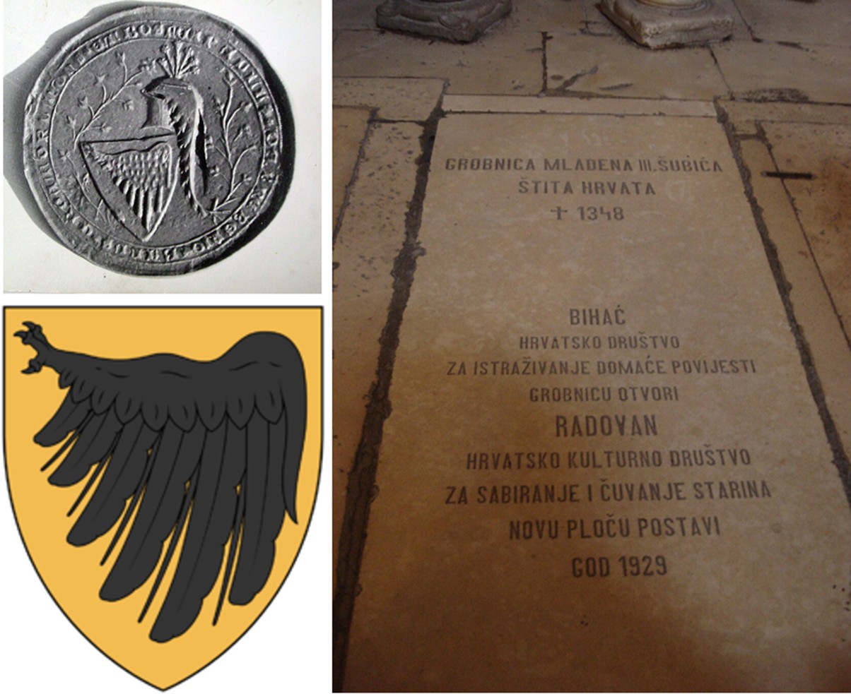Grb roda Šubića Bribirskih na izvornom pečatu bana Pavla I. Šubića iz 1312. godine i suvremena rekonstrukcija grbovnog štita; Grobnica Mladena III. Šubića (oko 1315. – Trogir, 1. svibnja 1348.), koji je svojim feudalnim područjem vladao upravo iz Klisa, a među suvremenicima bio poznat kao „clipeus Croatorum“ tj. štit Hrvata/Hrvatske
