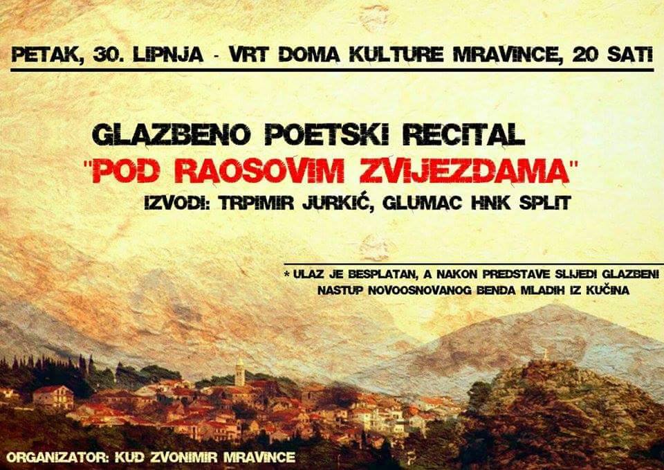 VEČERAS U DOMU KULTURE MRAVINCE – “POD RAOSOVIM ZVIJEZDAMA”