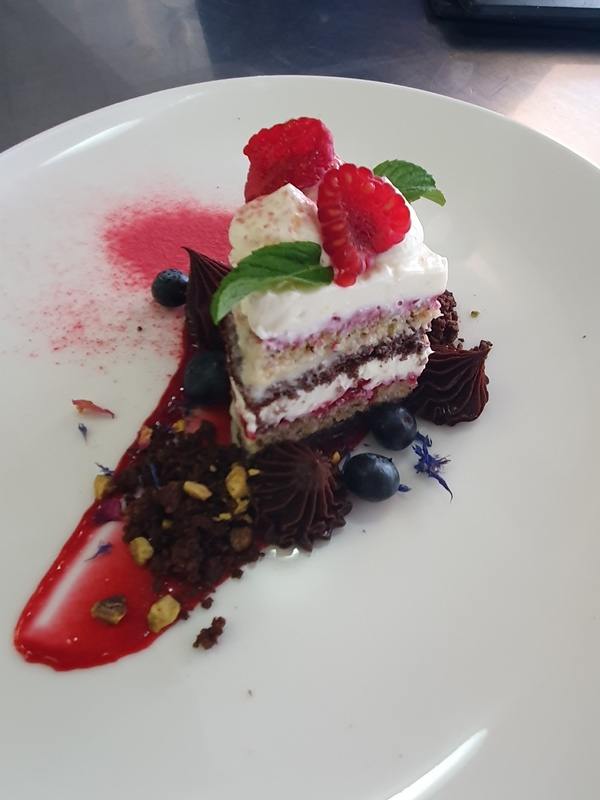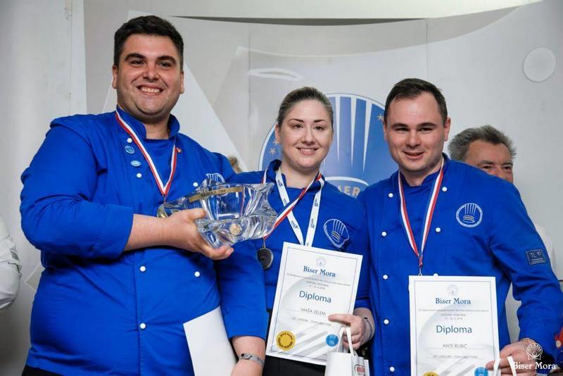 “Radi se o originalnoj slastici koju sam smislila prvo za svoj rođendan, a odlučila je spremiti na natjecanju, iako sam imala prvotnu potpuno drugačiju ideju od koje sam odustale zbog tehničkih razloga. Naime, ima u njoj čokolade i pravih šumskih lješnjaka koje su mi poslali prijatelji iz Dvora na Uni, a nemam ih prilike često nabaviti. Torta, dakle, ima dva sočna biskvita – jedan od tamne čokolade, drugi od lješnjaka. Tu su mousse od bijele čokolade, krema od mascarpone i limuna, kao i coulis od malina. Poslužuje se uz čokoladni ganache i streusel (mrvičasto tijesto) sa šumskim voćem. Nadam da će se svidjeti kolegama” – pojasnila je Maša Zeleni, inače kuharica iz tima restorana Bokeria koja je slastičarstvo usavršavala radeći u splitskom Congu.
