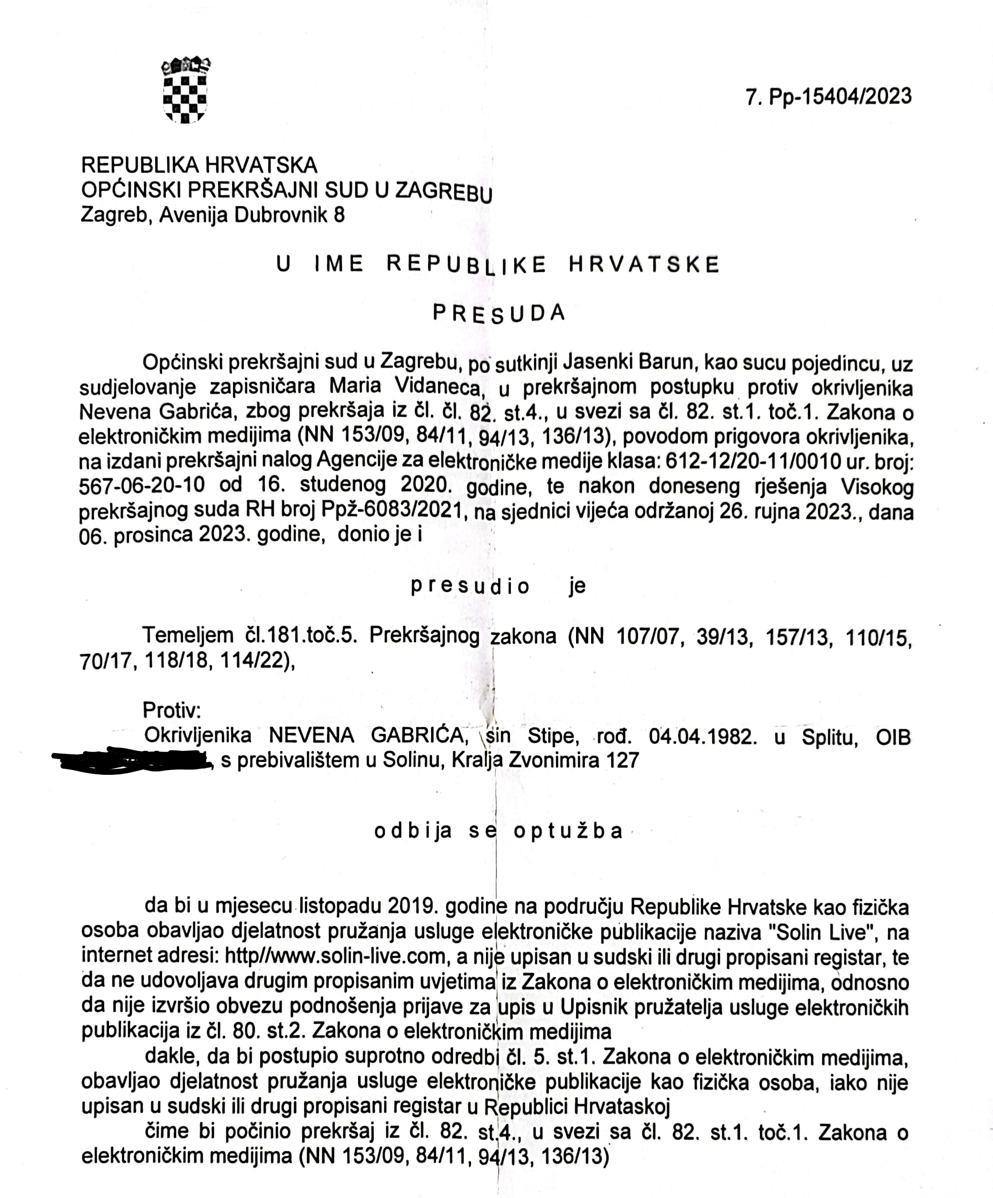 Upravo takva jedna “čestitka” sletila je na moju adresu u zadnjim danima prošle godine i izmamila mi osmijeh na lice. Oni koji pomnije prate moj rad, znaju da imam na desetke otvorenih sudskih frontova, većina ih ima zajednički nazivnik u liku i djelu sadašnjeg solinskog gradonačelnika.