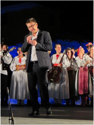 A, ja sam eto imala tu čast, da je do mene sidija čovik, legenda dalmatinskog folklora i folklora uopće, uvaženi koreograf šjor Branko Šegović. Budnim je okom sve pratija, podilili smo čokoladicu (ako se to čokoladom može zvatI) i, neću vam prinit šta mi je reka. Ni, koga je kritizira, ni koga je pofalija. Ma, ništa nije falija. A, onda je ka momčić požurija na autobus za Split, da ne zakasni. Bože dragi, šta taj ples učini od čovika, da se i u poznim godinama ljudi ovako dobro drže!?