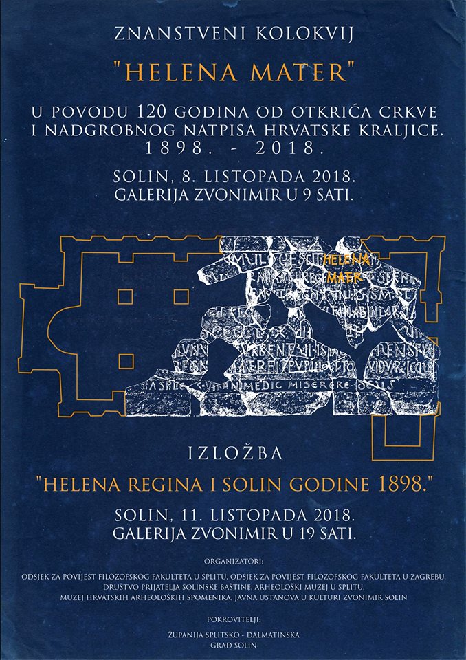 Društvo prijatelja solinske baštine vas poziva na znanstveni kolokvij i izložbu u povodu 120 godina od otkrića nadgrobnoga natpisa i crkve kraljice Helene u Solinu.
